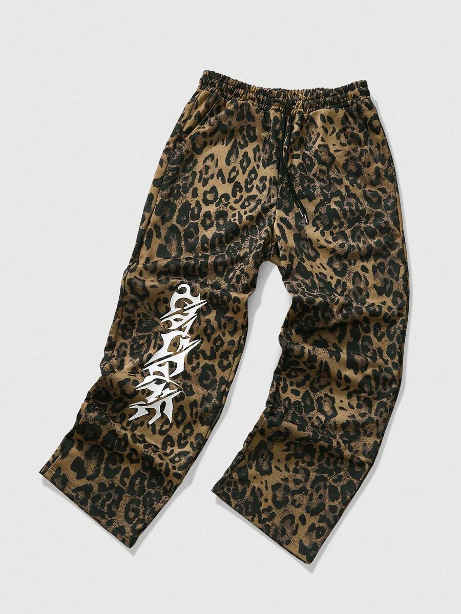 Street Life Pantaloni della tuta con stampa leopardata e grafica inglese, stile americano da strada, unisex