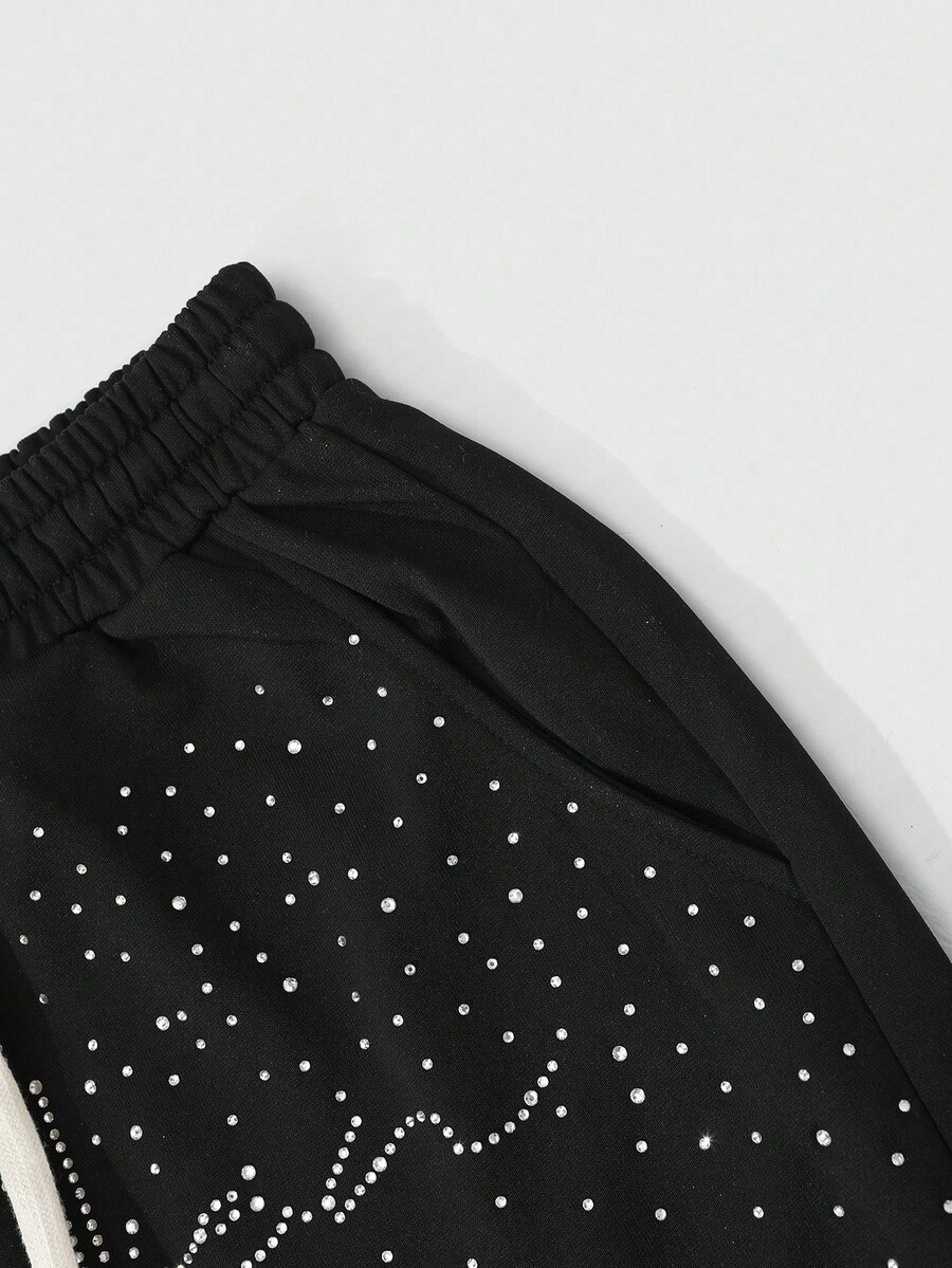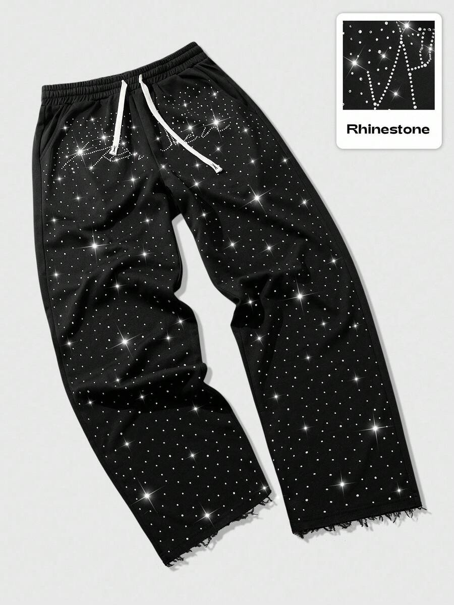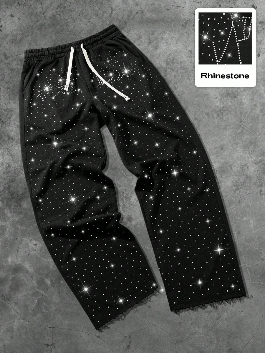 Street Life Pantaloni della tuta con gamba dritta, stile streetwear unisex, con strass e testo in inglese