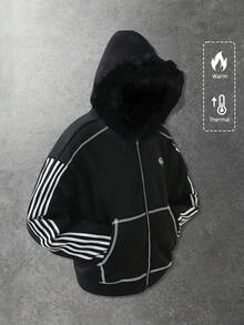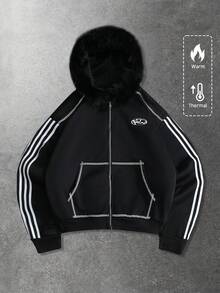 Street Life Felpa con cappuccio unisex con stampa inglese spessa, abbigliamento casual per autunno/inverno