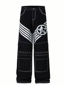 Street Life Jeans larghi e morbidi con stampa in stile Y2K, grunge, per uomo