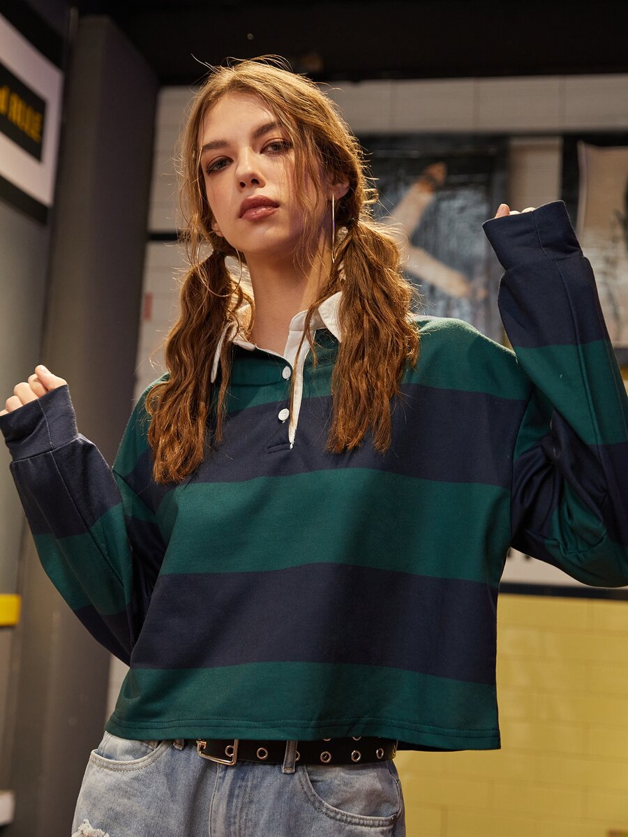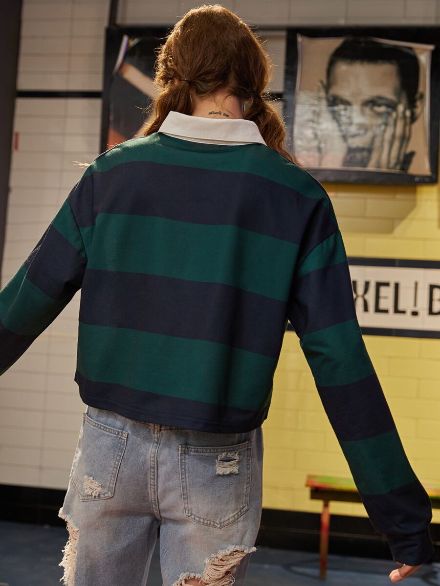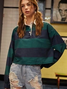 Felpa con collo polo a righe