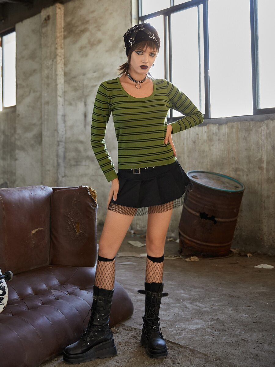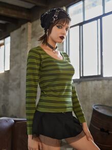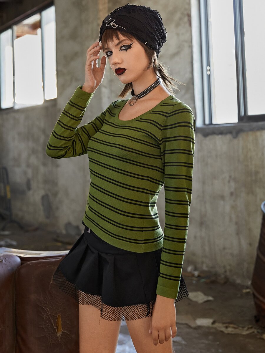 Maglione righe con collo rotondo