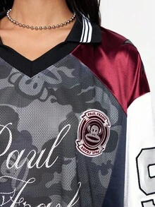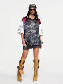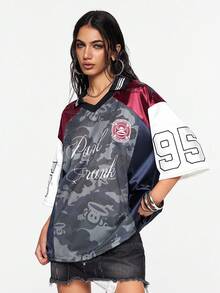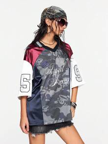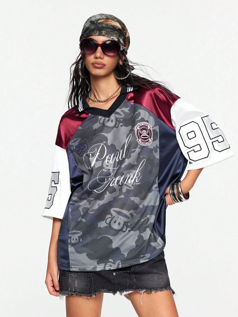 Paul Frank X ROMWE T-shirt oversize da donna con ricamo mimetico della sottocultura