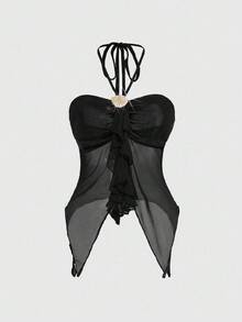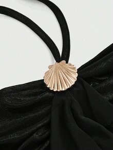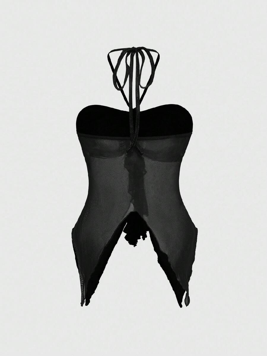 Fairycore Canotta da donna con decorazione a conchiglia e orlo asimmetrico, con spalline sottili