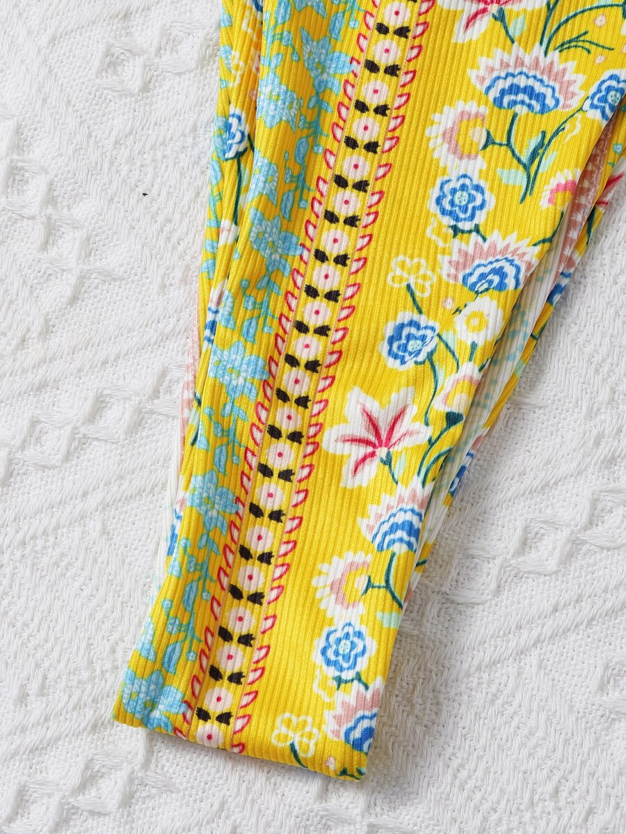 Insieme bikini estivo a fiori Ditsy e costine laterali con lacci per la spiaggia