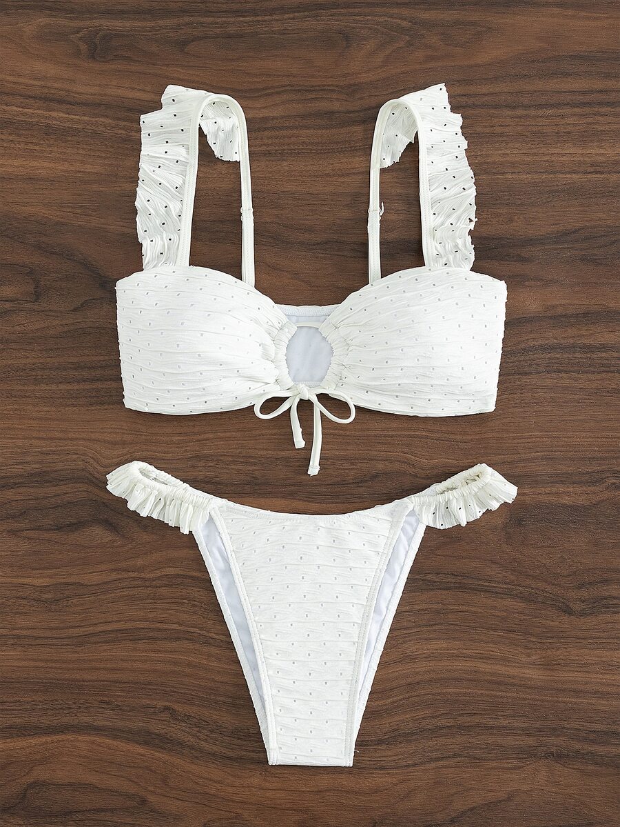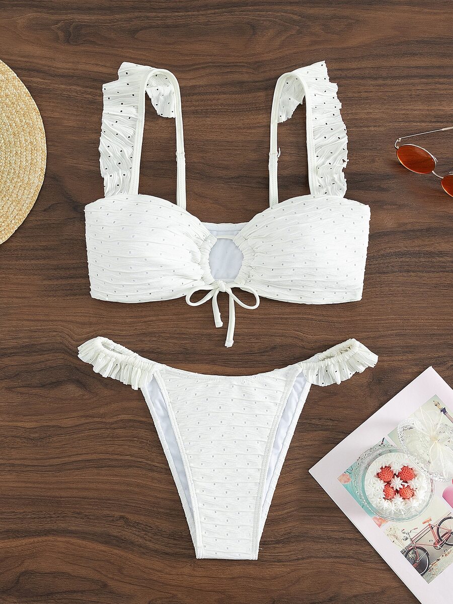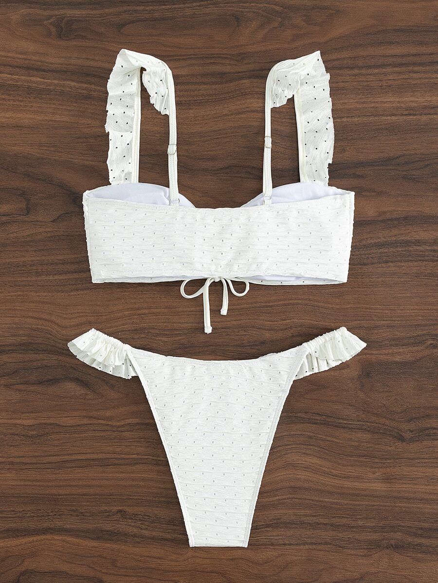 Set bikini mono per l'estate composto da top a nodo anteriore e slip con volant in 2 pezzi
