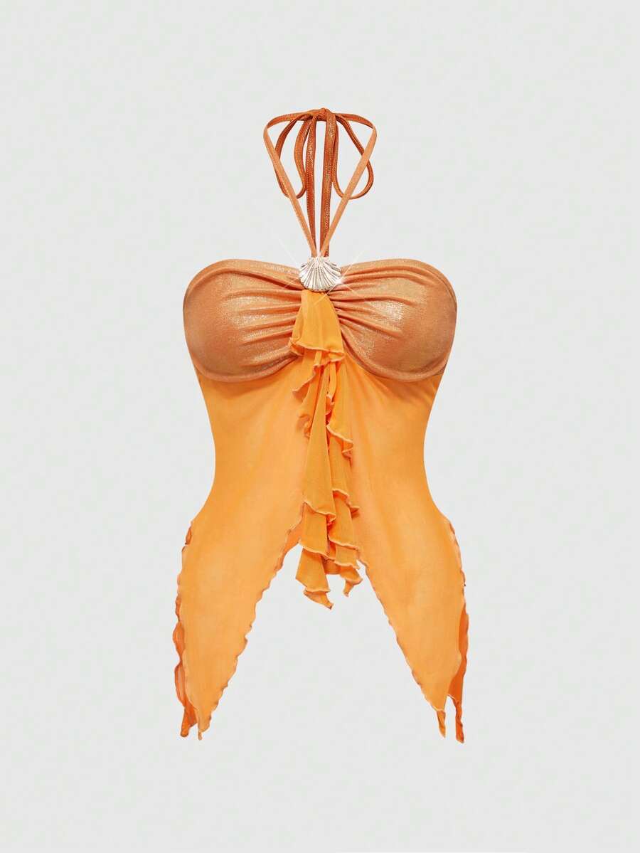 Fairycore Canotta asimmetrica da donna con decorazione a conchiglia, per l'estate