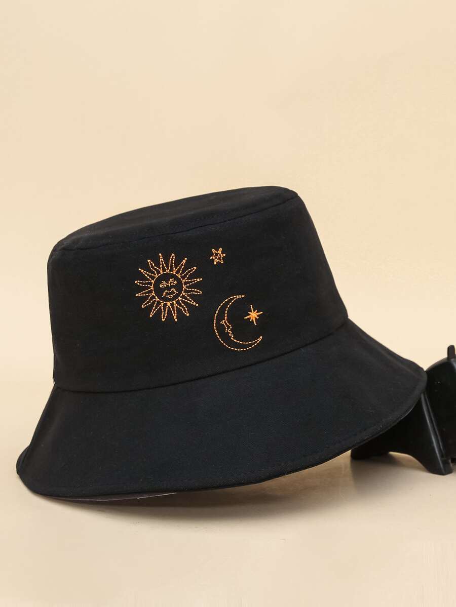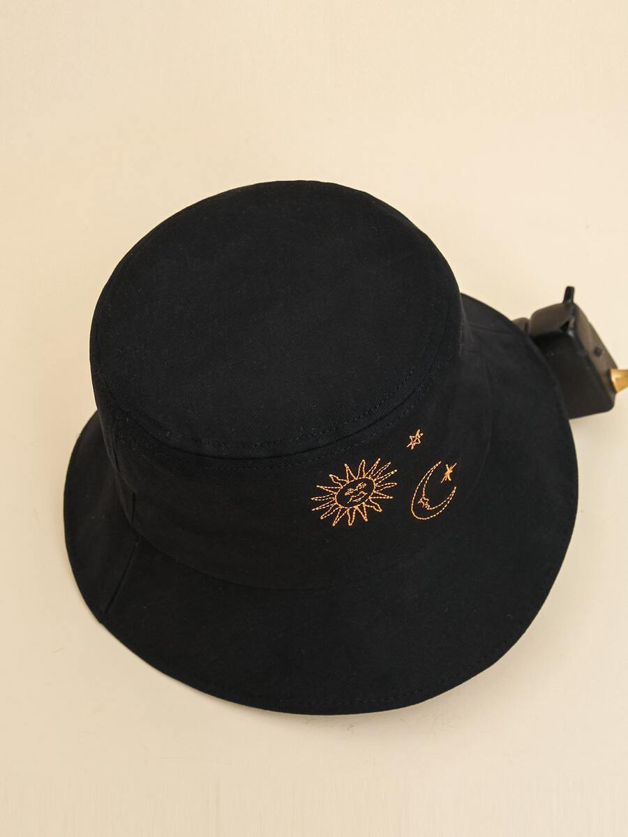 Cappello a secchiello con ricamo a sole & luna