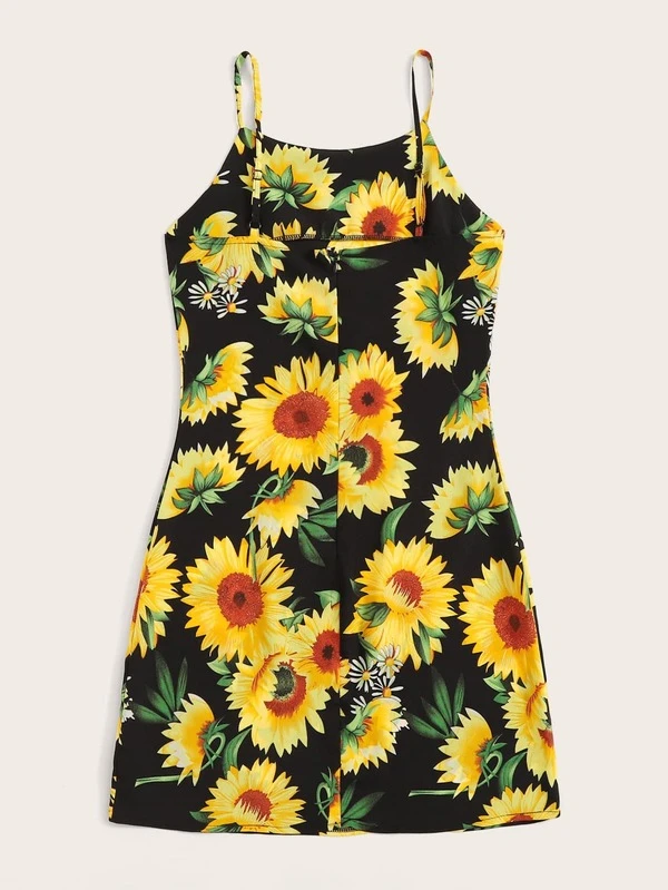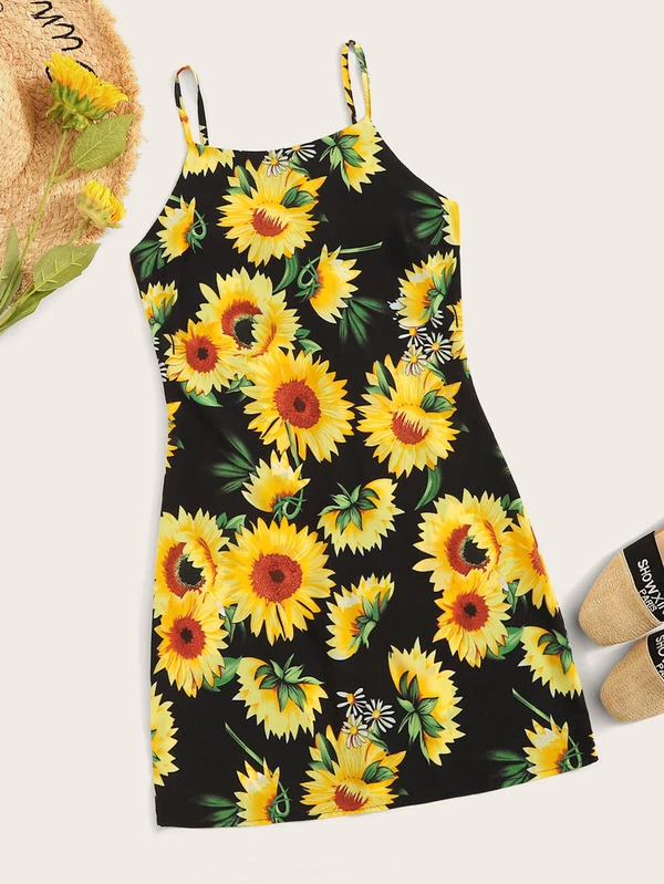 Abito con bretelle sottile e stampa girasole