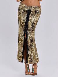 Gonna attillata con volant in stile vacanza al mare, con stampa animalier in stile Y2K per donne