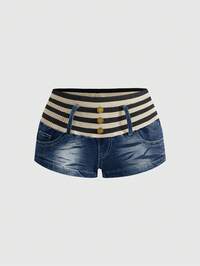 Grunge Punk Pantaloncini di jeans da donna a vita ultra bassa, a patchwork a costine, in stile Y2K