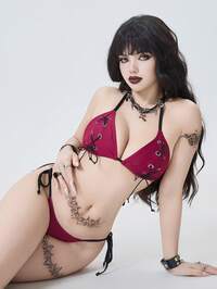 Goth Set costume da bagno 2 pezzi, stile gotico scuro punk d'avanguardia sexy, 2026 primavera/estate, decorazione con rivetti metallici, lacci a più fasce, fiocco, rosso scuro, nero, argento, reggiseno a triangolo regolabile. Adatto per Capodanno, San Valentino, ritorno a scuola, stagione dei viaggi, uscite, spiaggia, pomeriggio del tè, picnic, feste, uso quotidiano, tempo libero, sport all'aperto, outfit di stile.