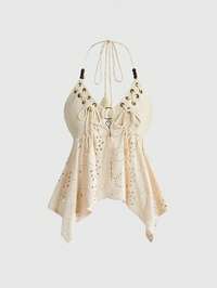 ROMWE Avant Top canotta sexy da donna con spalline a spaghetti e schiena scoperta, decorato con perline di legno, in stile vacanziero all'italiana Y2K