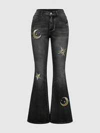 ROMWE Avant Jeans a vita bassa ampi e svasati da donna con design vintage e rivetti consumati