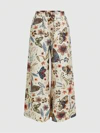 Fairycore Pantaloni larghi da donna in stile gotico vintage con stampa di funghi e foresta, stile hippie boho