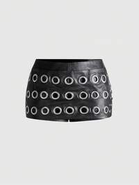 ROMWE Avant Pantaloncini mini super vita bassa sexy con borchie metallici per feste di vacanza