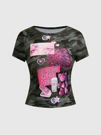 J-Fashion Maglietta aderente da donna con stampa mimetica stile Y2K Babe Abby Element