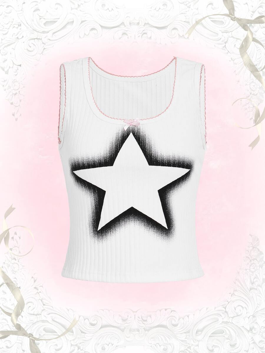 Sweetness Top con stampa a stelle e bordi a contrasto