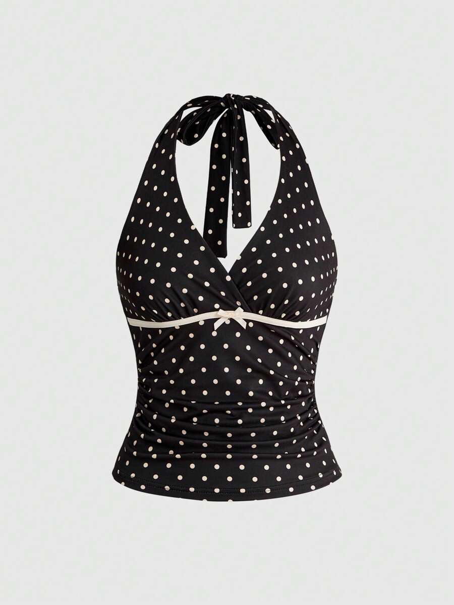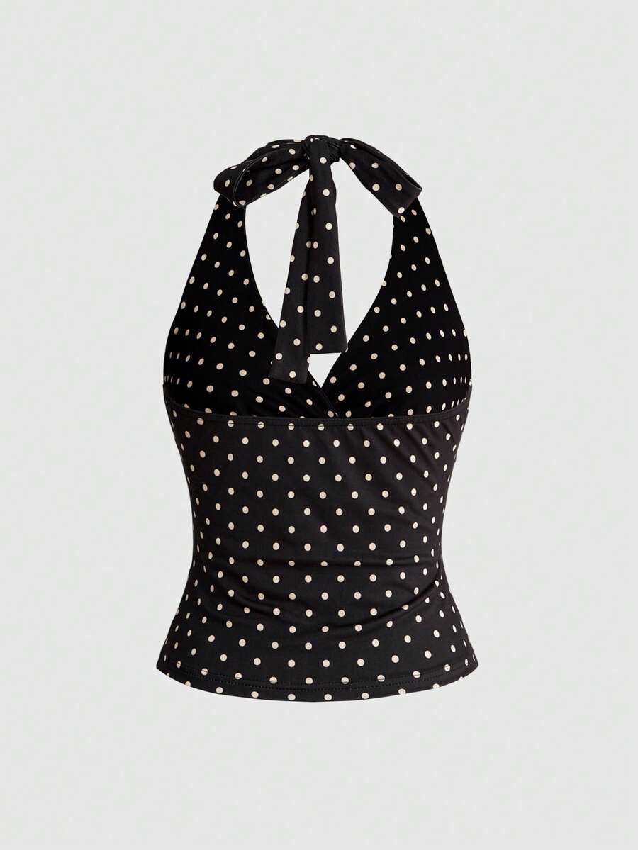 Sweetness Canotta da donna sexy con scollo a V, spalline sottili, schiena scoperta, a pois, in tessuto maglia elasticizzato, casual, adatta per uso quotidiano, primavera/estate