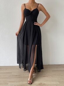 Abito incrociato con bretelle sottile con pois torsione frontale capestro