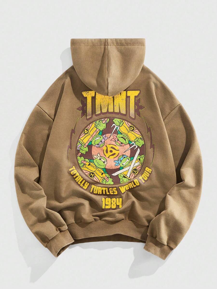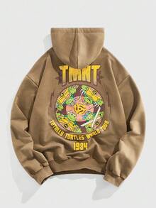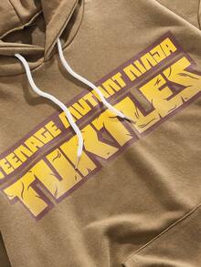 TEENAGE MUTANT NINJA TURTLES X ROMWE Felpa con cappuccio casual da uomo con grafica a lettere e tasche con laccetti, autunnale