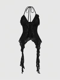 Fairycore Canotta da donna in stile Y2K con lacci e bordo a volant a forma di farfalla