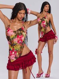 ROMWE Avant Canotta da donna con scollo a V, decorazione a conchiglia, tessuto jacquard strutturato, orlo con spacco, adatta per vacanze estive, festival musicali, crociere, vacanze al mare, feste eleganti, cerimonie di laurea, appuntamenti e altre occasioni