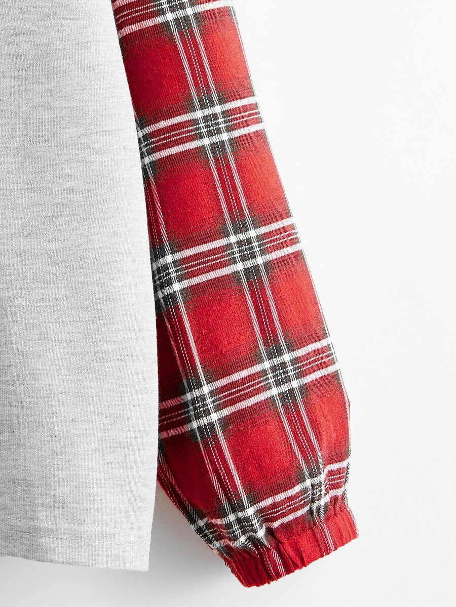 Felpa con cappuccio e coulisse con tasca e pannello a quadri