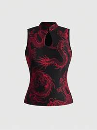ROMWE Avant Top da donna stile retrò J-FASHION con stampa tigre rossa in stile cinese