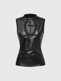 Grunge Punk Top senza maniche e schiena scoperta sexy da donna, colore nero, decorato con borchie, strass e nastri, adatto per l'estate, la spiaggia, la laurea, la Pasqua, i concerti, le vacanze a Nashville, i festival musicali, il rock Grunge Punk Canotta da donna sexy senza maniche con spalline sottili, scollo basso, nera, con borchie, cristalli e nastri, adatta per l'estate, spiaggia, laurea, Pasqua, concerti, vacanze a Nashville, festival musicali, rock