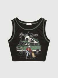 Grunge Punk Canotta nera da donna senza maniche, sexy, con spalline sottili, scollo basso, decorata con borchie, cristalli e nastri, adatta per l'estate, la spiaggia, la laurea, la Pasqua, i concerti, le vacanze a Nashville, i festival musicali, il rock