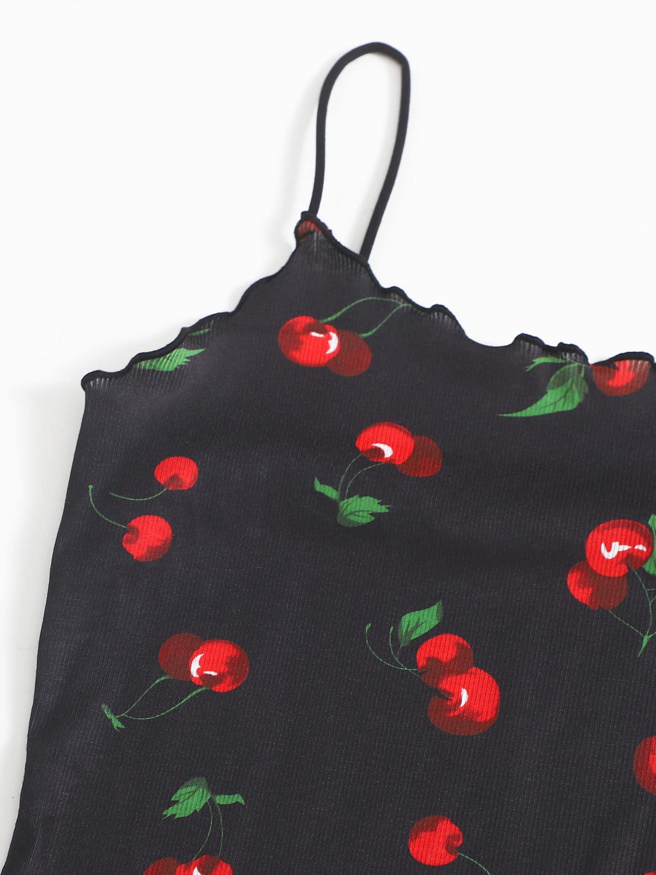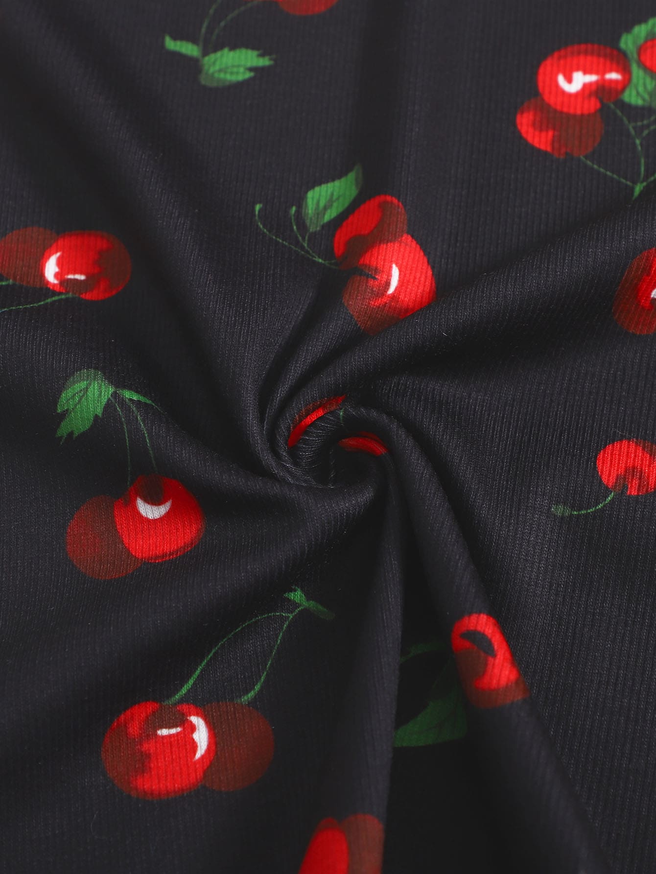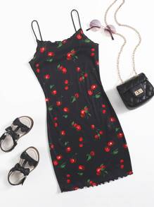 Abito con bordo a lattuga con stampa ciliegia dappertutto