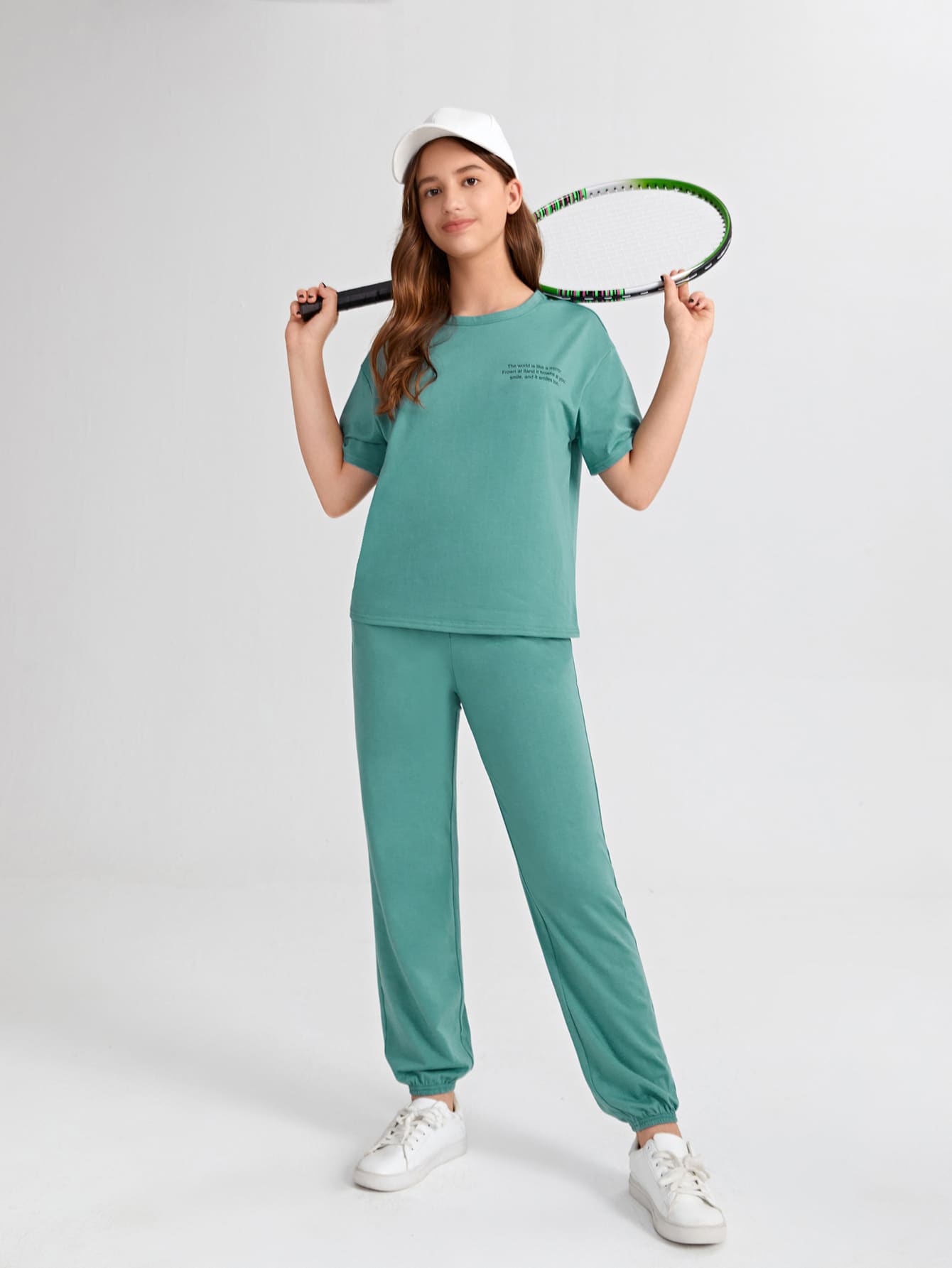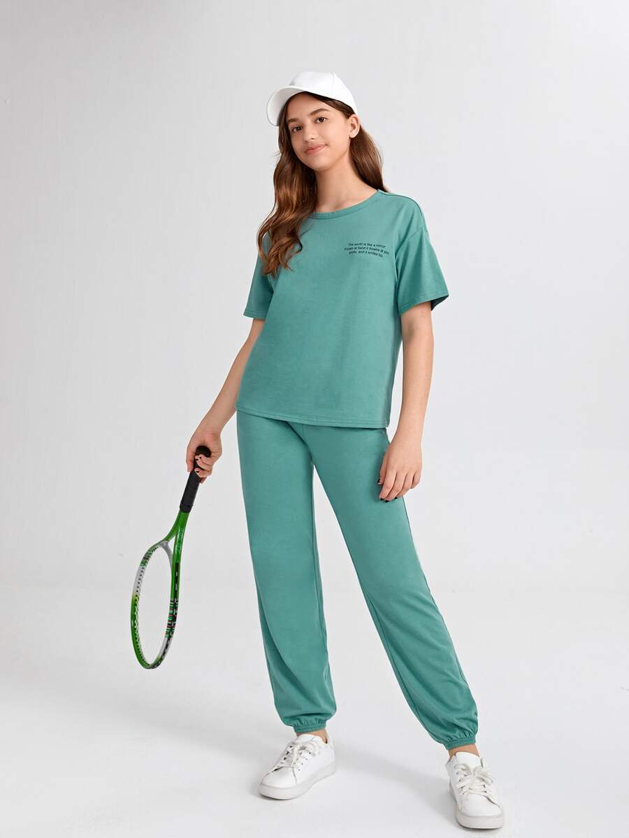 Set joggers & Maglietta con slogan grafico con spalle cadenti