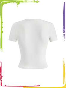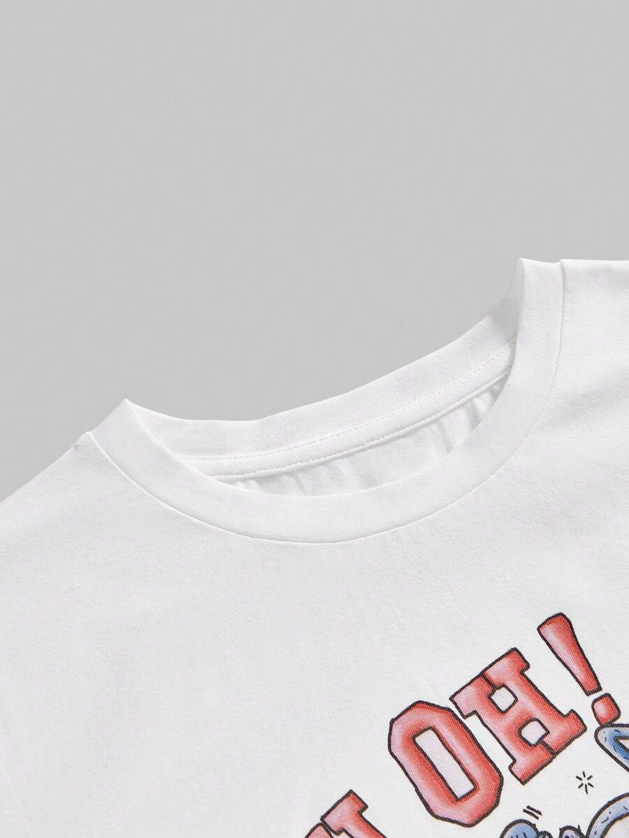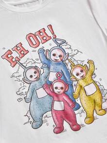 Teletubbies X ROMWE T-shirt estiva casual da donna con grafica di cartoni animati e lettere, scollo tondo, maniche corte