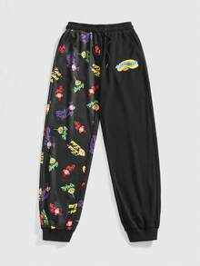 Teletubbies X ROMWE Pantaloni della tuta casual da donna con vita con coulisse e motivo a cartoni animati