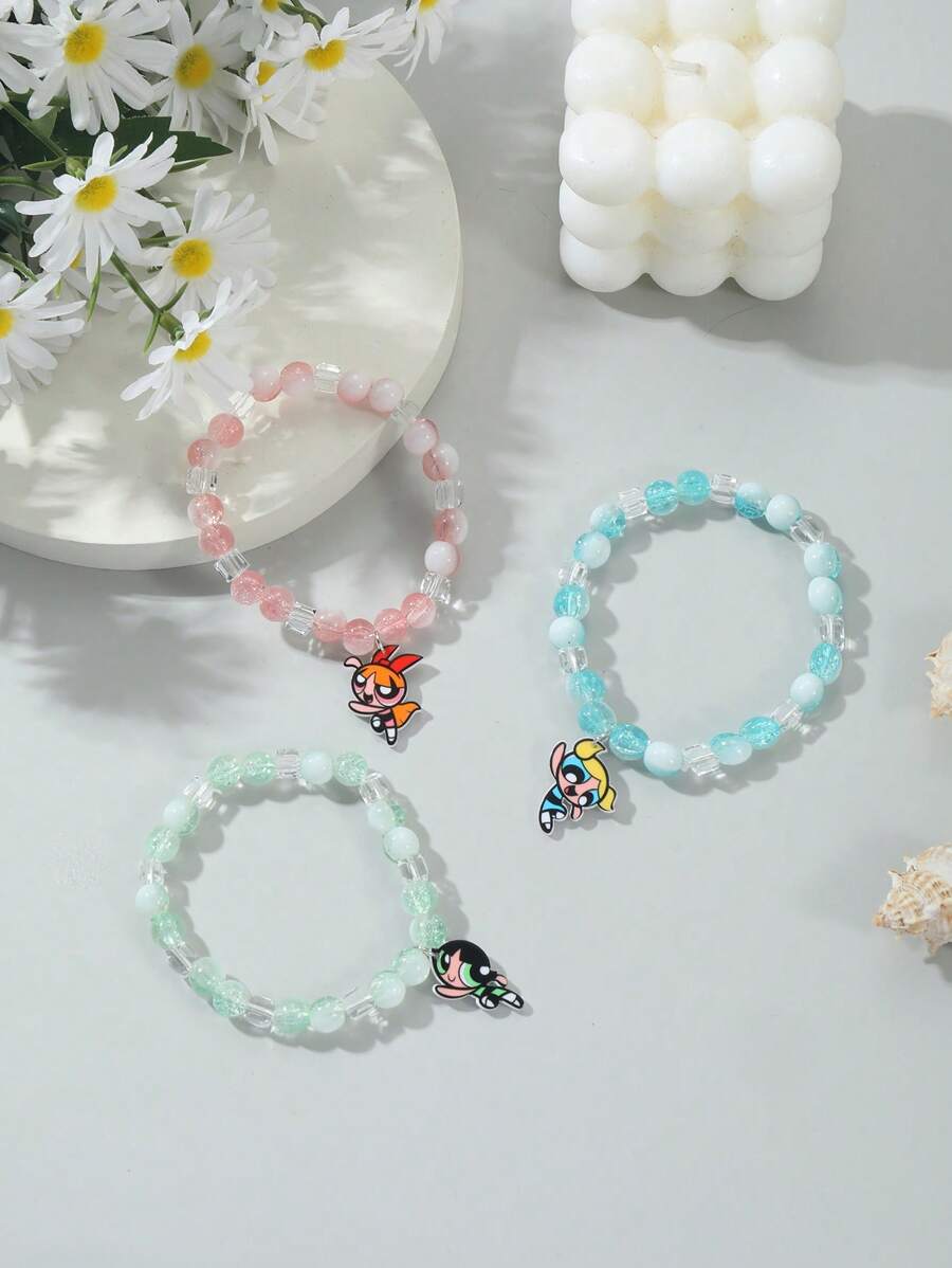 The Powerpuff Girls | ROMWE Set di 3 braccialetti in perline di vetro a motivo cartone animato
