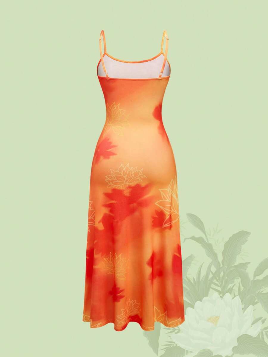 The White Lotus Abito lungo arancione aderente con stampa tie-dye e fiore di loto plissettato, adatto per vacanze estive