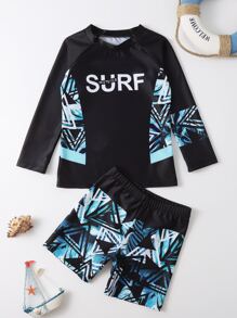 Costume da bagno a due pezzi tropicale con grafica di lettere
