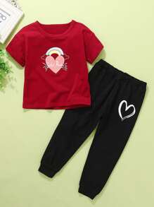 Maglietta con stampa cuore e lettera e pantaloni sportivi