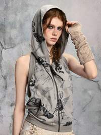 Grunge Punk Canotta nera da donna senza maniche, sexy, con spalline sottili, scollo basso, decorata con borchie, cristalli e nastri, adatta per l'estate, la spiaggia, la laurea, la Pasqua, i concerti, le vacanze a Nashville, i festival musicali, il rock