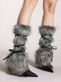 Anime 1 Set Comprende: 1 Paio di Scaldamuscoli Pelosi Bianchi con Fiocco + 1 Paio di Calze Sopra il Ginocchio + 2 Paia di Anelli per le Gambe, Accessori Stile Punk Y2K per Donne