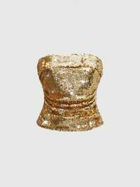 ROMWE Avant Top fascia con paillettes dorate, crop top, per donne taglia curvy, adatto per festival musicali, primavera/estate