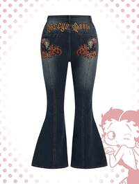 Betty Boop | ROMWE Jeans a zampa con ricamo a cuore e figura, taglie comode