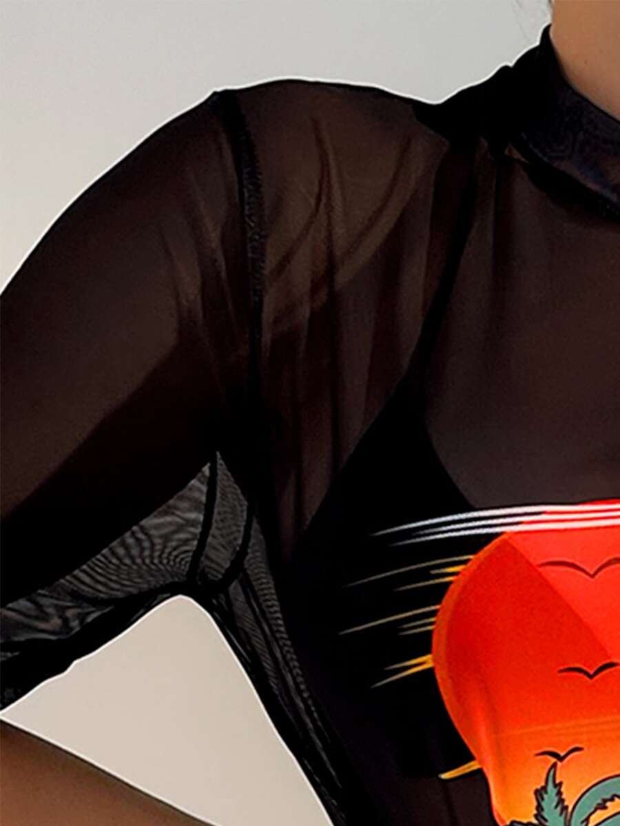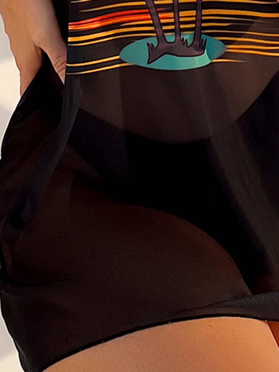 Copricostume abito con stampa tropicale mesh senza set bikini