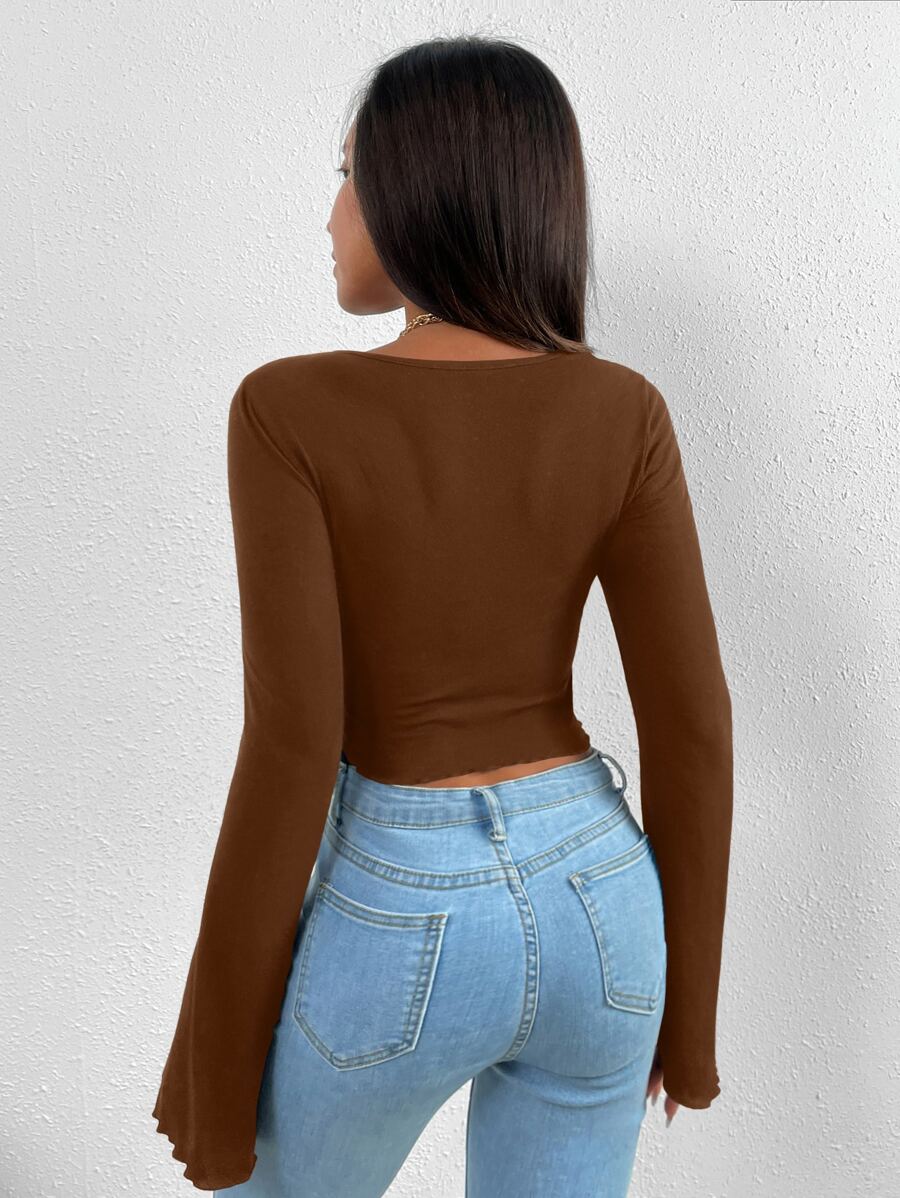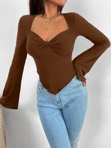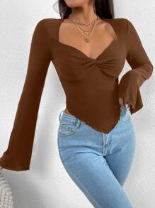 Maglietta corta maniche a campana orlo lattuga con nodo con orlo asimmetrico