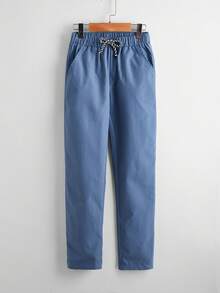 Pantaloni casual slim vita alta dritti per ragazzo pre-adolescente, colore unito con tasche inclinate