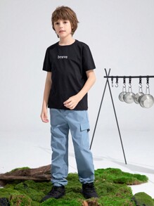 Ragazzo Tween con grafica lettera Maglietta & tasca con patta cintura con fibbia Pantaloni Set