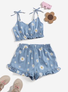 Ragazza Tween Set Cami & Pantaloncini con stampa margherita con spalle annodate con volant