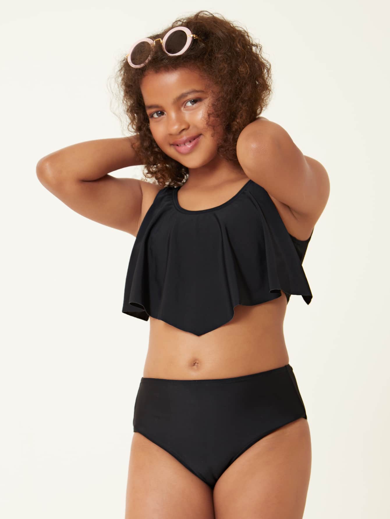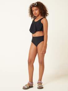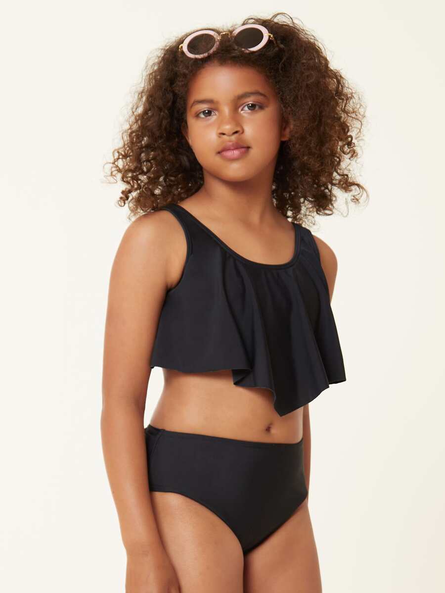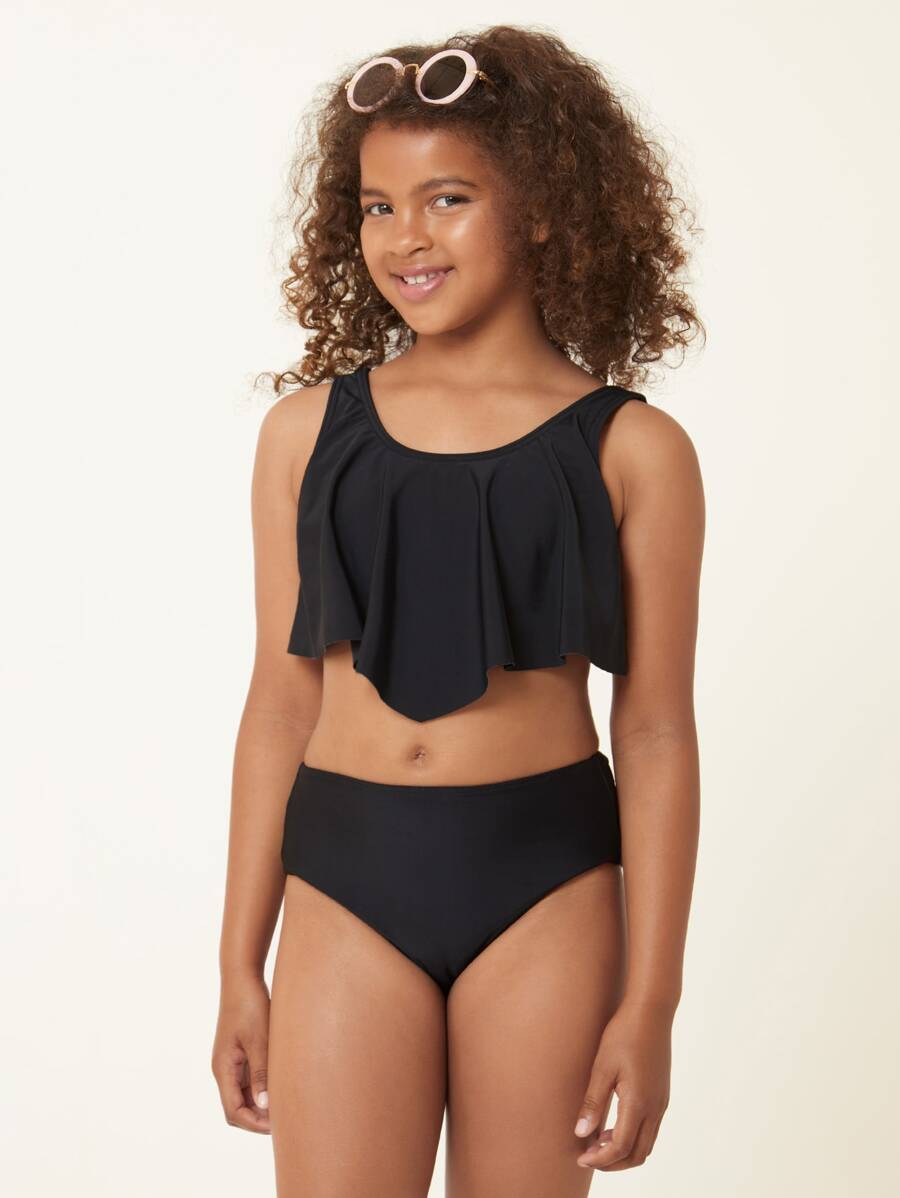 Costume da bagno a due pezzi con volant per ragazzine, estivo e da spiaggia