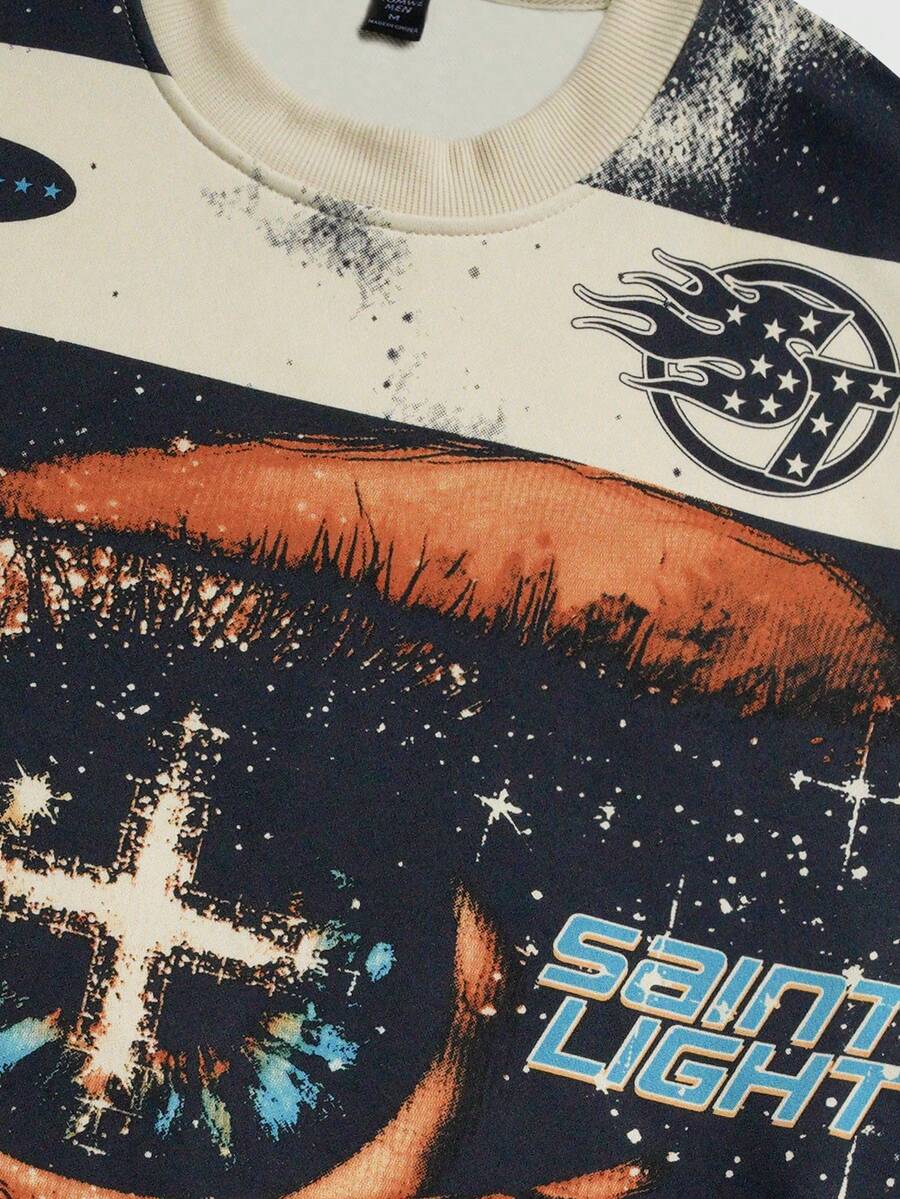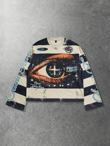 T-shirt casual unisex a girocollo con stampa, top a maniche lunghe in stile casual da coppia, primavera/autunno